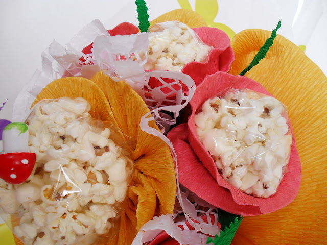 Recentemente lançámos os Bouquets de Pipocas porque sabemos que este doce continua a ser irresistível para muitos, principalmente nesta época do ano. É um ramo para ser consumido em menos tempo que os restantes e indicado para alguém que não resista em desmanchar o bouquet para comer!